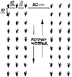 Additionally, a 0.30 x 0.15 m spacing is convenient when rotary weeders are used.