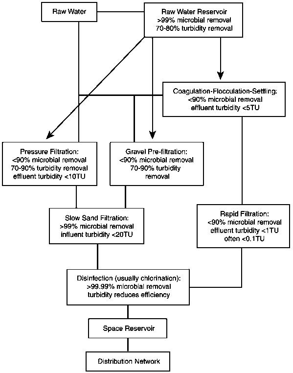 · often need to reduce turbidity before treating water as this may interfere with treatment | |