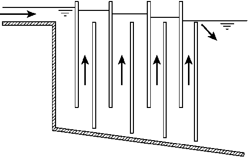 · sedimentation is achieved by the settling of particles in slow moving water | |