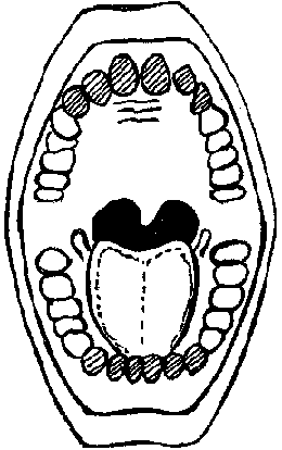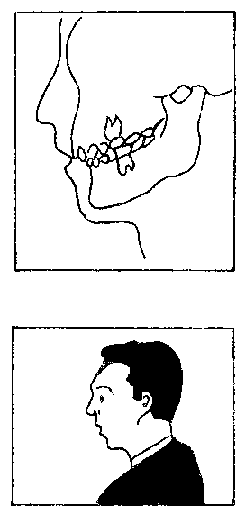 * Luego al examinar la boca; primero lo hacemos de perfil (costado) y luego con la boca cerrada vemos si hay mala oclusión, observemos en el dibujo:
