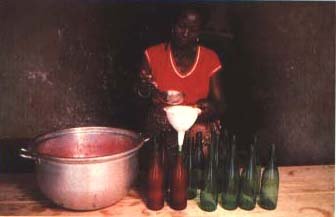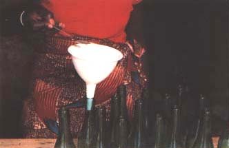 54. A small spoonful of lemon juice without pips goes into each clean, empty bottle.