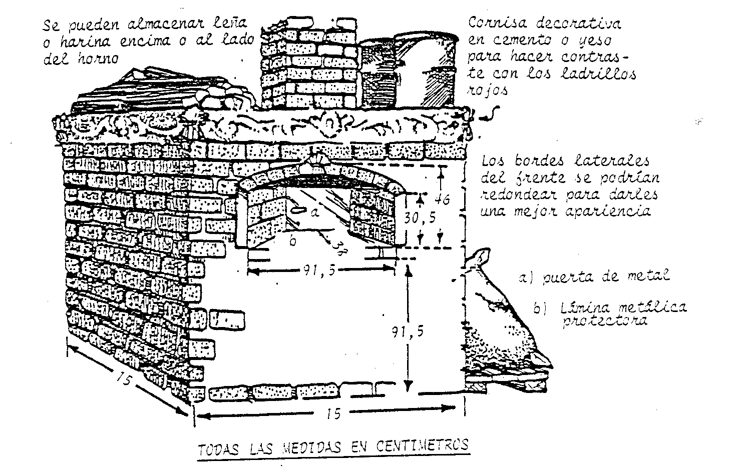 Este horno se construye de ladrillo y argamasa y consiste en un