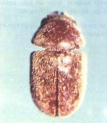 Este pequeño gorgojo de cuerpo oval alargado, de 2,5 mm de longitud, de color café rojizo, tiene dos bandas transversales negras sobre los élitros. Se detectó en investigaciones realizadas por INIA, en pellets de afrechiílo de trigo en otoño de 1977 en la Región Metropolitana.