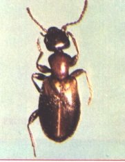 Pequeño insecto de 3,0 a 3,5 mm de longitud, de color café oscuro. Se le ha encontrado en granos en descomposición y pellets de afrechillo de trigo en la Quinta, Sexta y Región Metropolitana.