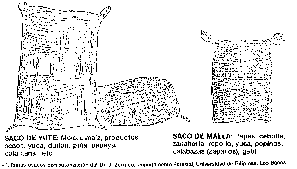 - excepto en el caso de papas y cebollas, no protegen suficientemente al producto y no pueden estibarse cuando contienen productos delicados;