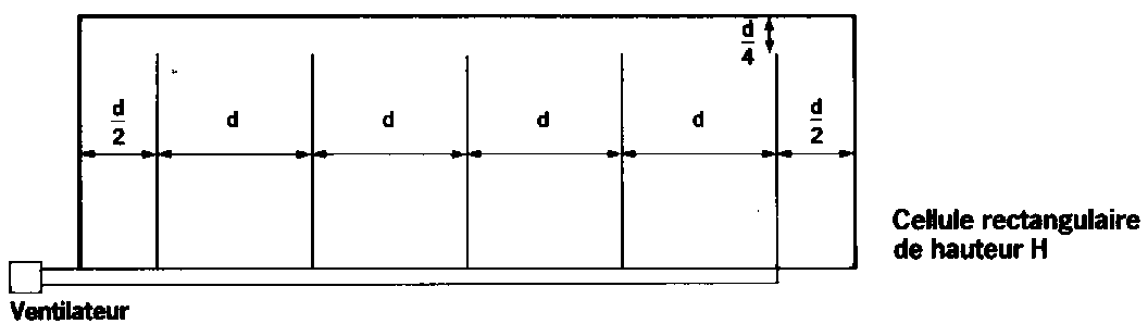 Les gaines devraient être espacées d'une distance telle que le rapport du plus long trajet l'air. depuis une gaine jusqu'à la surface. au plus court trajet soit inférieur à 1,5.