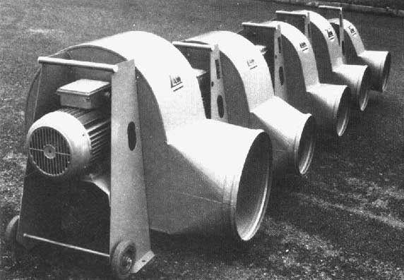Le fonctionnement de tels ventilateurs est toujours délicat, sauf si l'on est en présence de deux appareils du même type, et peut être défectueux si les ouïes d'aspiration sont trop proches. Si un ventilateur est plus puissant que l'autre, il arrive que le débit d'air traversant le grain soit presque le même avec 1 ou 2 ventilateurs; par contre, les puissances et les consommations s'ajoutent!