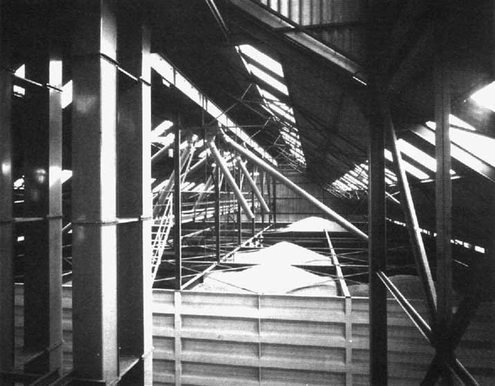 Généralement, le grain arrive dans la cellule par un tuyau de descente situé au dessus du tas.