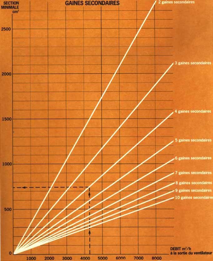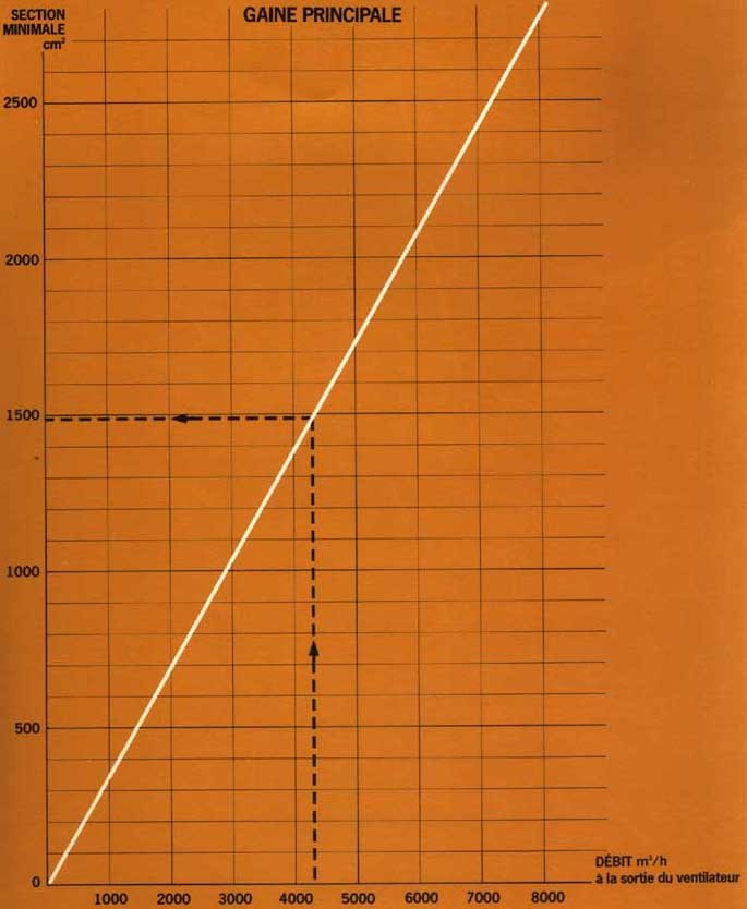Calcul de la section des gaines (pour une vitesse de 8 m/s)