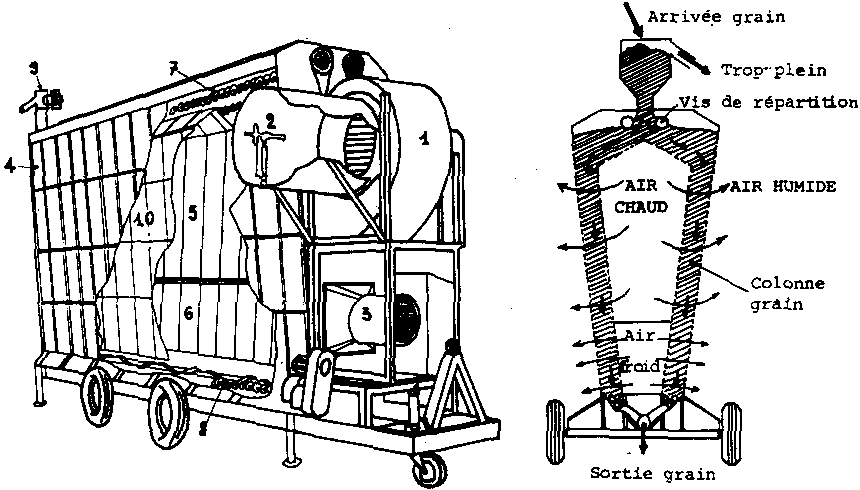 | 4: Colonne annulaire - circuit grain | 8: Chambre grillagée d'arrivée d'air chaud |