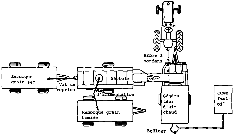 Fig. 48: Chantier de séchage avec séchoir continu mobile. (Doc. CORNELOUP.)