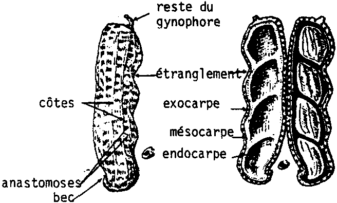 Après fécondation de la plante, le développement d'un gynophore porte en terre l'ovaire qui va se développer en gousse à quelques centimètres sous la surface du sol.