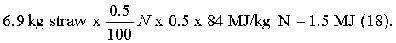 6. Assuming that 50 per cent of the nitrogen contained in straw is recovered in dung, the manufacturing energy value of this nitrogen is: