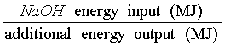 Therefore, the treatment of straw increased weight gain by 70.0 - 55.5 = 14.5 kg/1,000 kg straw. (This figure is conservative, because a calf fed treated straw consumed slightly less oilcake/1,000 kg straw than the one fed untreated straw.) The energy value of this bodyweight gain is taken as 9.6 MJ/kg (calves about 1-year-old gaining at a rate of 0.40 kg/day[19]), or 139.2 MJ for 14.5 kg. The manufacturing energy cost of NaOH is estimated to be 51 MJ/kg;