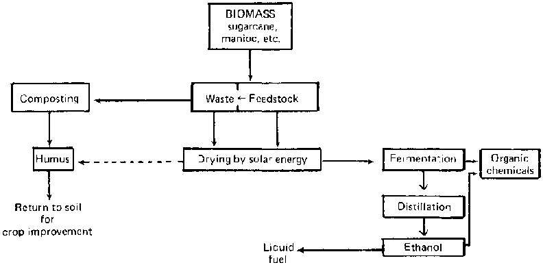 Most attention today is being given to the possible use of micro-organisms to convert relatively high-quality biomass (corn and grains, sugar-cane juice, etc.) to fuel. Although this topic will be discussed later, certain technical and economic restrictions exist that must be removed if significant fuel production is to result from fermentation of such high-quality biomass, because these substrates have other important possible uses. This does not mean, however, that residues from farm crops, livestock feedlots, agro-industries, forest operations, and other similar practices should be excluded. This is especially so in circumstances where their removal does not eventually reduce the quality of the land, permit soil erosion, or produce other harmful effects on crops.