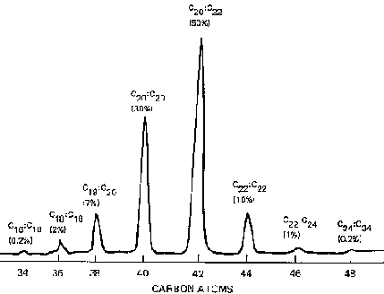 For a raw natural extract, the oil is remarkable for its molecular uniformity: it is 97 percent linear wax esters. (The remainder comprises free fatty alcohols and acids, and tocopherols.) It also has an amazing internal homogeneity - more than 87 percent of the esters present are combinations of acids and alcohols with chain lengths of 20 or 22 carbon atoms. By contrast, common vegetable oils have fatty acids whose carbon chain lengths are mostly 16 and 18.