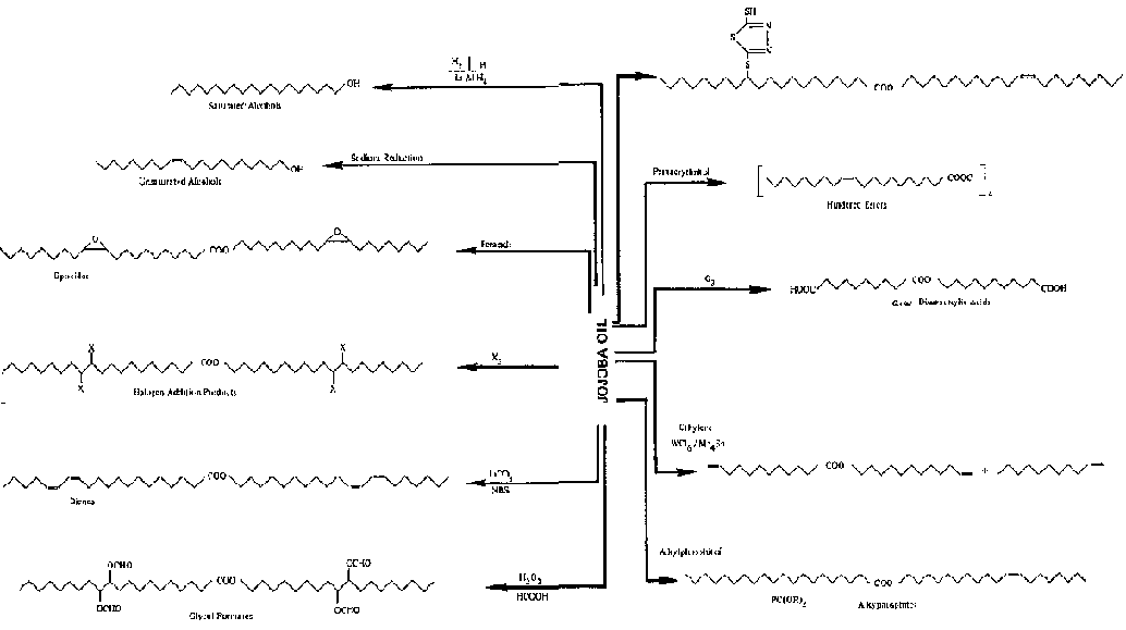 The nature of the oil can be grossly changed by reactions at the double bonds and ester functions, and many new products can result. One research laboratory in Israel, for example, has produced more than 40 different jojoba-based chemicals that appear to have commercial industrial applications.(Information from A. Shani and J. Wisniak)