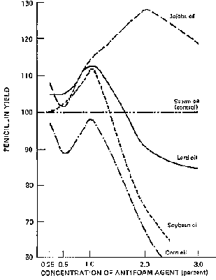 oils were used in various concentrations to break the foam in the fermentation