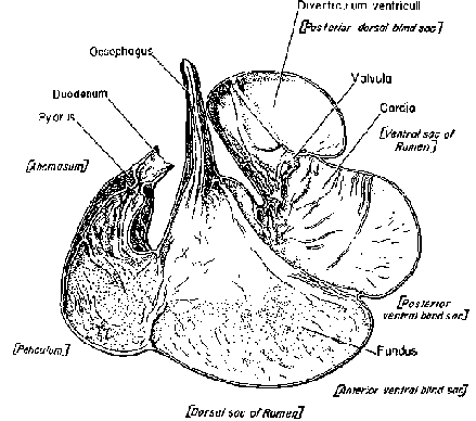 simple ruminant such as the domestic sheep. Every part except the omasum, even