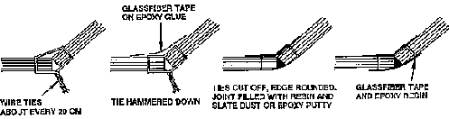 with epoxy resin, and finishing the seal with fiberglass tape and additional