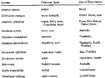 · In the Orinoco Delta of Venezuela unselected Criollo/Zebu crossbred cattle gained 0-0.2 kg per day on Paspalum fasciculatum, whereas the water buffaloes with them gained 0.25-0.4 kg per day(Cunha et al., 1975).