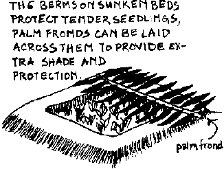 Gardeners in drylands recognize that heat-adapted crops may differ widely in drought adaptation. We saw an example of this at a new rural settlement in arid Sonora State in northern Mexico where villagers were planting fruit trees. The only source of water for the 30 households in the village was a well 2 km (1 mi) away, and each household had only a few small containers for carrying the water on foot. Orange, pomegranate, papaya, mango, guava, and lime trees were planted. All of these trees were growing vigorously in a nearby town which has a reliable piped water supply. But the harsh, dry conditions in the new settlement were killing all except the lime trees, which were growing slowly. According to the gardeners, lime trees are the best for coping with heat and drought. These villagers also have avocado seedlings in containers that they keep in the shade near their houses. They said they will not plant the seedlings out into their gardens until a more secure water supply is found, because they know that avocados would not survive the heat and sun exposure with the little water they could provide.
