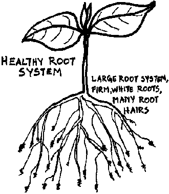 From the soil roots obtain nutrients such as nitrogen and phosphorus which are essential for healthy plant growth. In some cases this is made possible through mutually beneficial or symbiotic relationships between plant roots and soil microorganisms. Mycorrhizae (Box 9.5 in section 9.5) symbioses enable plants to use more of the phosphorus, zinc, or copper in the soil.1 Symbiosis between Rhizobium bacteria and roots of legumes makes nitrogen in the air available to the plant while also enriching the soil (section 9.5.2).