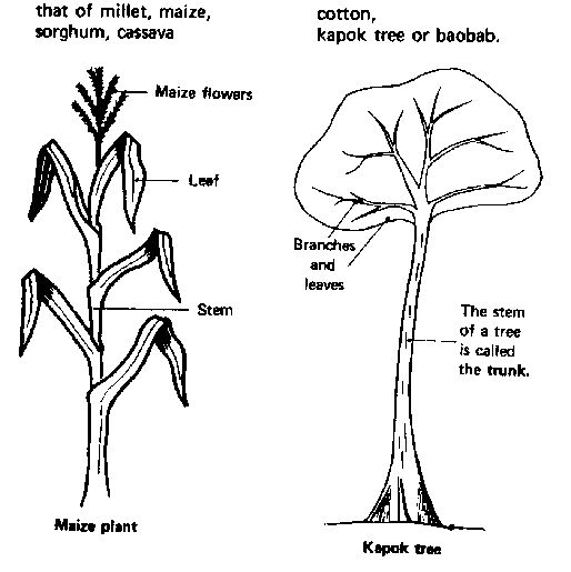 · The stem can be upright, for example, that of millet, maize, sorghum, cassava