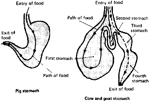 Sheep, goats and cows eat the same food. These animals have the same stomachs.