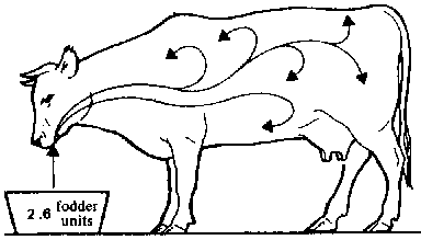 Five to ten kilogrammes of grass or silage are needed to give the value of 1 fodder unit.
