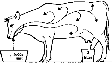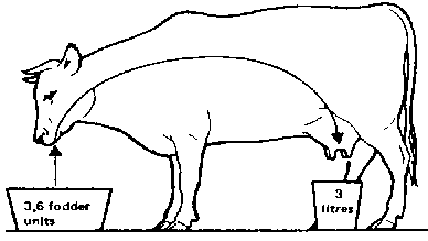 · Many experiments have been made to find out what amounts of food an animal needs to produce milk, meat, work.