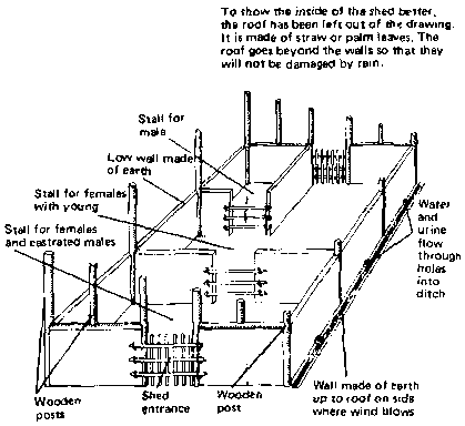 To protect the animals from sun and rain, make a roof of straw or palm leaves.