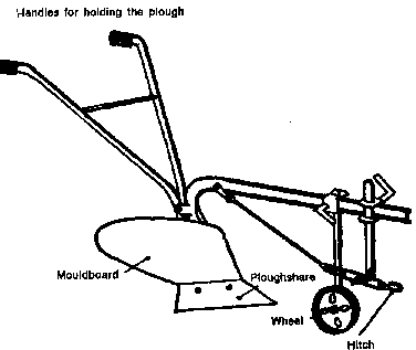 Most often, people use a simple plough. The plough consists of a ploughshare, a mouldboard and two handles.