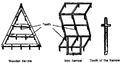 23. Ploughing often does not leave the soil flat. There are clods of earth. These clods of earth are broken up with a harrow.