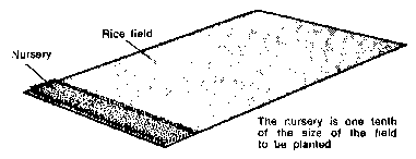 The right size for the nursery is one tenth of the size of the rice field to be planted.