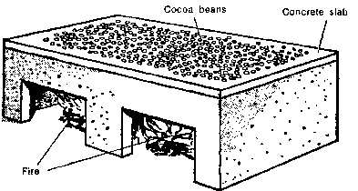 48. When the beans are well fermented, they must be dried. Cocoa beans may be dried in the sun. Spread the beans on boards raised 1 metre above ground level. The layer of beans should not be very thick; not more than 4 centimetres. Stir the beans often and protect them from rain.