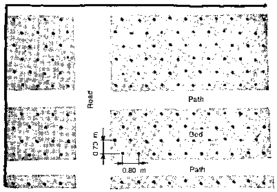 The beds should be 45 metres long and 3.5 metres wide. The soil of the beds should be well worked to make it quite flat. After that, apply a dressing of fertilizer. For instance, at La Me, Ivory Coast, 250 kilogrammes of 10: 10: 20 fertilizer are applied per hectare.