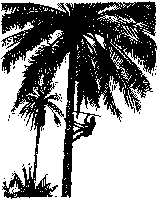 For oil palms 7 to 12 years old Cut the clusters with a machete. If the clusters are too high up, climb up the tree by putting your feet on the base of the leaves.