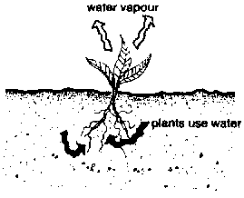 23. Plants use the water in the ground to live and grow, and as they live they breathe and give off water vapour from stems and leaves.