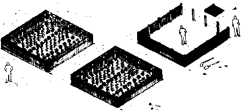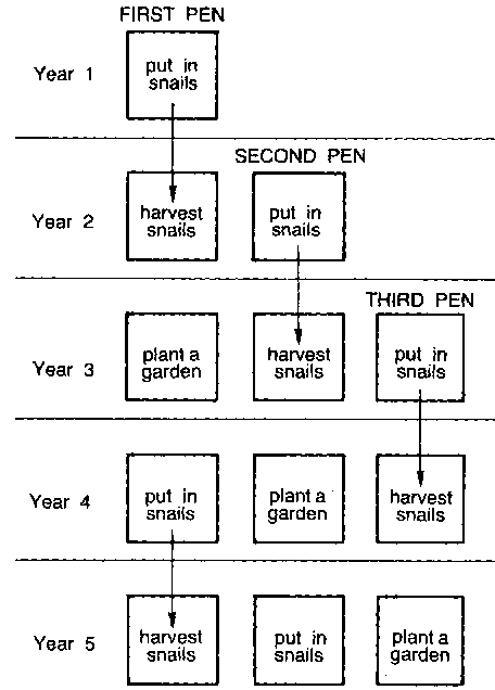 234. The diagram below shows you how to improve a snail farm by planting a vegetable garden in each pen from to time.