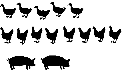 125. Begin with either four to five ducks, five to eight chickens or one to two pigs for each 100 square metres of pond. Later you may be able to keep even more.