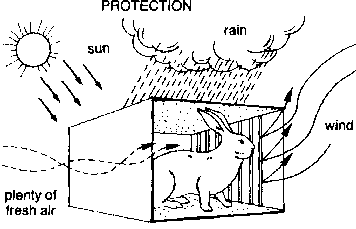 21. Rabbits may become sick or die if it is too windy or if they get wet. Rabbits should never be wet. So, they must have a place that is protected from wind and rain.