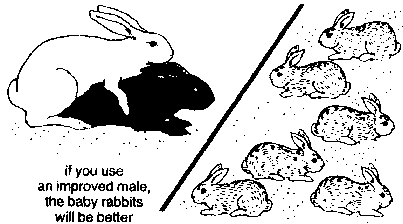 33. Sometimes, you can get improved rabbits that have been brought from another place. Improved rabbits have been carefully mated over many years and they are better than local rabbits.