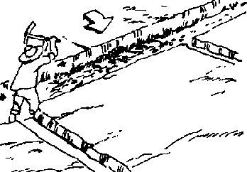 Weave split bamboo strips between the pegs and place bush or stones against the dam's upper side. Periodically, clean the area above the dam.