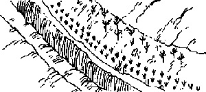 In the drainage system, drive stakes into the ground, perpendicular to the water flow. Gliricidia makes an ideal "live" peg if it is available. The cuttings will grow and form a permanent living barrier.