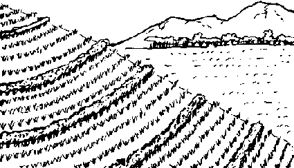 Wherever possible, introduce hedgerow strips of tree legumes every 6-7 m of about 1 m deep to provide green-leaf fertilizer for upland rice. Suggested tree legumes are Kakawati, Cassia spectabilis or ipil-ipil.