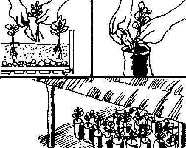 2. Uproot carefully and transfer cuttings into polyethylene bags (6" x 7") with soil mixture of equal parts of sand, compost of manure and soil.