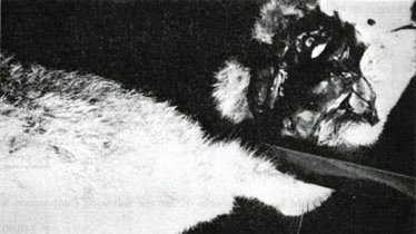 8. Now take your razor blade (preferably single edge) and slowly cut out the pattern (Caution here because it is very easy to slip and cut yourself and damage the fur) (Fig. 54).
