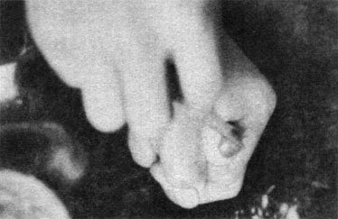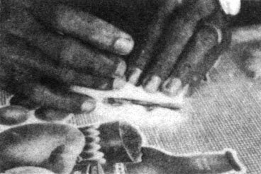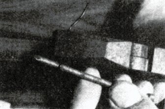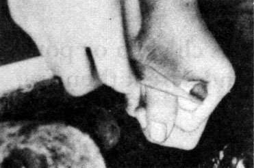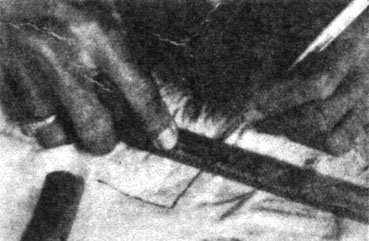 4. With the homemade hand drill, make a hole in the center of the bone about 1 cm to 1 ½ cm deep (Fig. 43).