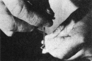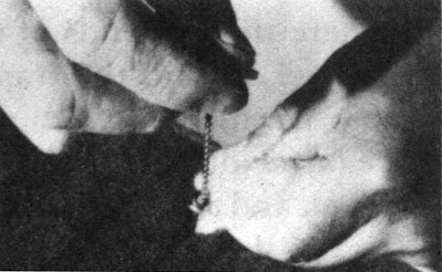 1. Prepare hook by bending copper wire around a.075 nail to form an eye. Use a pair of pliers for easy manipulating (Fig. 42).